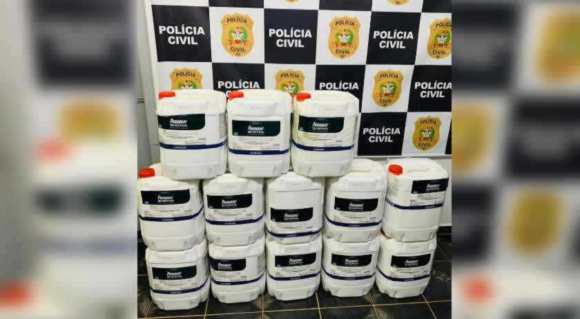 A Polícia Civil de Santa Catarina, por meio de policiais civis da Operação Hórus MJSP, no dia 20 de abril, em Campo Erê, realizava ações de combate aos crime transfronteiriços quando abordaram um veículo que transportava cerca de 260 litros do dessecante PARAQUAT SIGMA, o qual é de uso proibido no Brasil, caracterizando o crime de contrabando.
