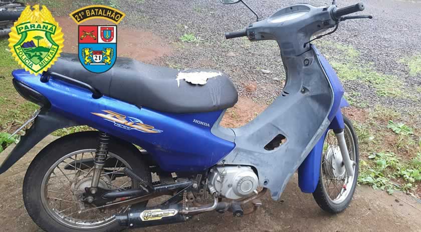 Na manhã desta quarta-feira (26), por volta das 6h15, a Polícia Militar de Barracão, após solicitação de um viajante que relatou aos policiais que viu uma motocicleta abandonada ao lado da rodovia BR-163, se deslocou até o local referido, onde localizou uma Honda/Biz C100.