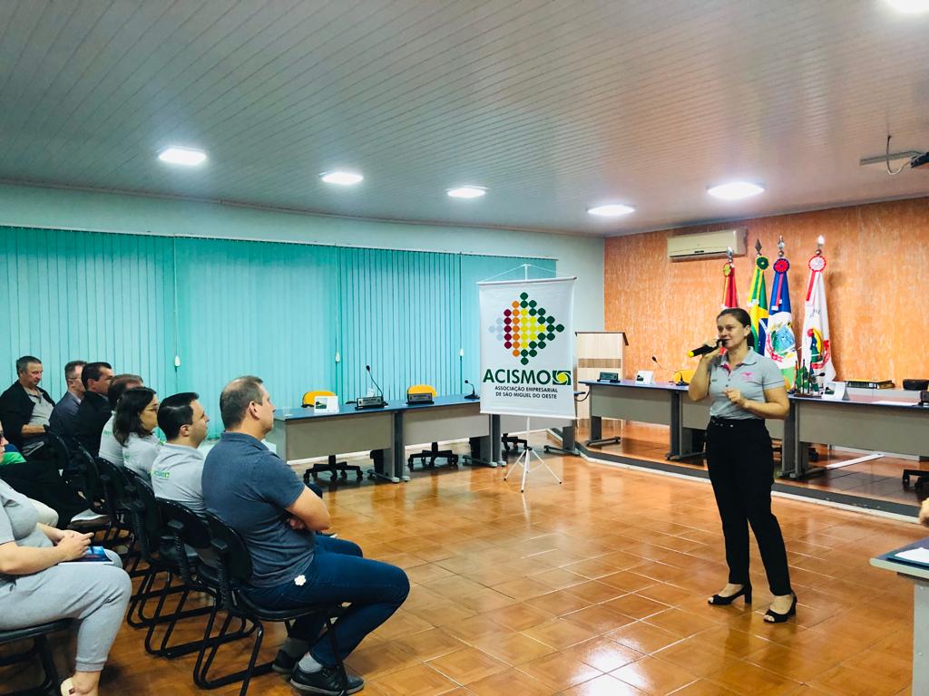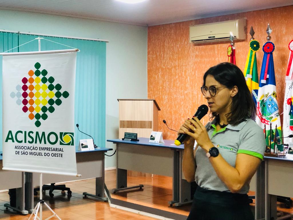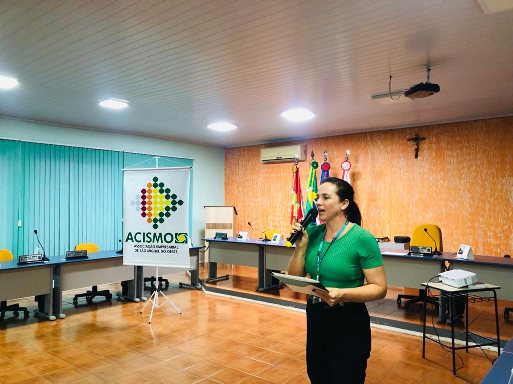 Moyra Wandscherr, diretora do Programa Empreender da ACISMO, finalizou a apresentação da entidade destacando que fazer parte de uma associação empresarial é um caminho, mas cada um tem que fazer a sua parte.