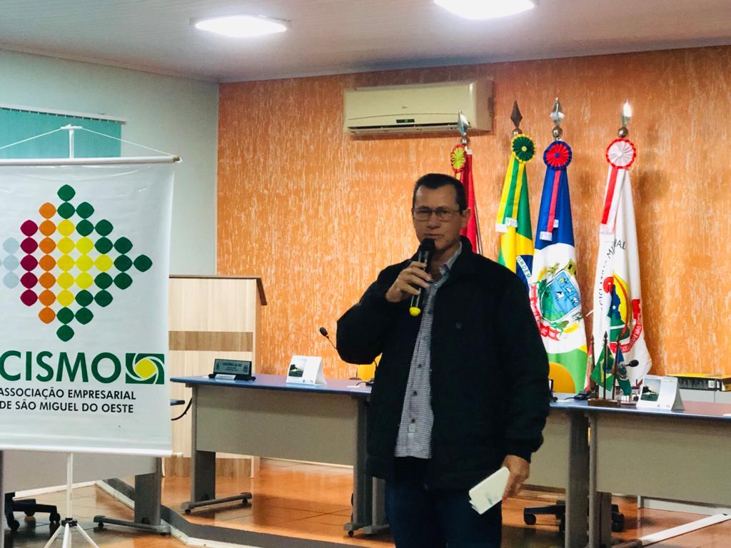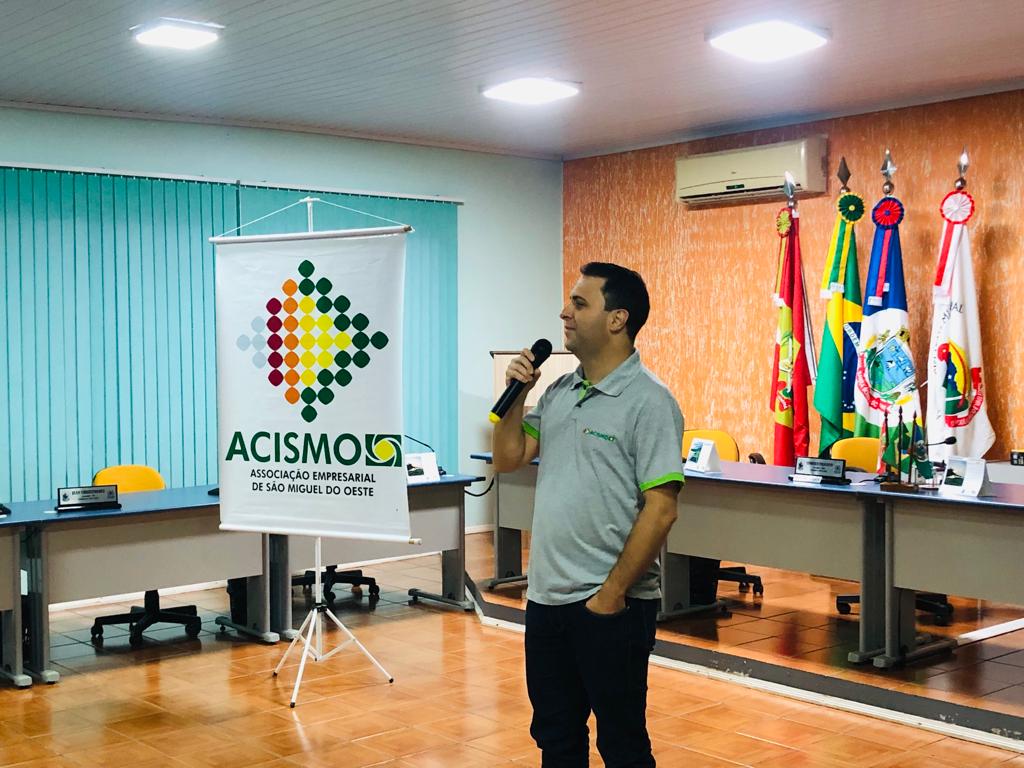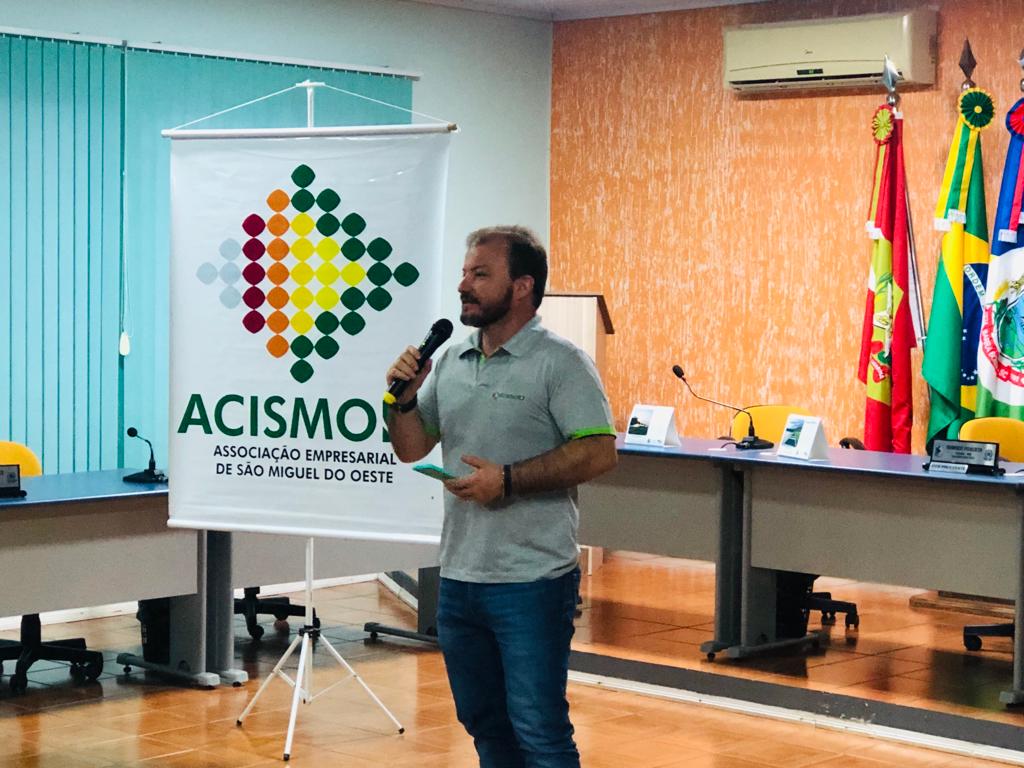Daniel de Souza, presidente da ACISMO, falou sobre sustentabilidade e representatividade, destacando o papel da entidade no apoio aos empresários, sobre as conquistas que o associativismo tem proporcionado para a região e pautas que a entidade aborda junto a organizações e poder público. "Sozinhos não vamos a lugar algum, precisamos do associativismo e cooperativismo para irmos mais longe e para ter sucesso, é preciso ter pessoas que assumam a responsabilidade, damos apoio e abrimos portas, mas cabe aos empresários fazerem isso acontecer", reforça.