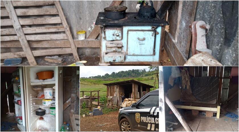 O homem, de 56 anos, trabalhava há 7 anos em uma propriedade rural. Os investigadores identificaram que não havia moradia no local, a vítima dormia em um pequeno galpão em meio a 10 cachorros. No local não havia instalação sanitária, sendo que a vítima fazia suas necessidades fisiológicas em uma área de mata. As condições do local eram precárias, de modo que não existia nem chuveiro, fazendo com que o trabalhador precisasse tomar banho em água fria de um pequeno riacho.