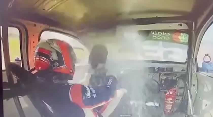 Uma câmera instalada no carro de Magnabosco filmou o incidente. O vídeo mostra que o objeto passou ao lado do rosto do piloto, que levou um susto e fez o sinal da cruz em agradecimento ao livramento. Somada a velocidade da pedra com a do carro, o impacto fica na casa dos 200 km/h.