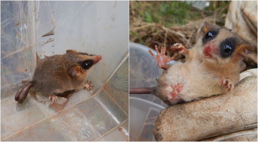 A equipe de especialistas fez o registro fotográfico e realocou a cuíca em segurança para uma área de vegetação próxima ao local onde foi encontrada.
