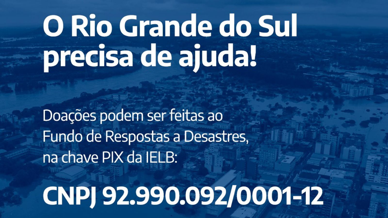 Foram aproximadamente 60 municípios atingidos e, até o momento, 41 mortes confirmadas. As contribuições podem ser feitas ao Fundo de Respostas a Desastres, através do PIX para a IELB, utilizando o CNPJ 92.990.092/0001-12. Os comprovantes devem ser enviados pelo WhatsApp no número (51) 3332-2111.