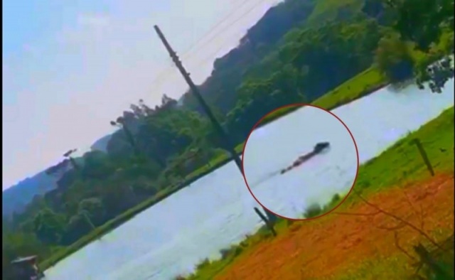 “Não, isso não é verdade”, ri e brinca a mulher que fez o vídeo ao avisar o animal nadando no açude de um lado para o outro. As imagens foram compartilhadas pelo perfil @pinhalensenaoaprende no Instagram.