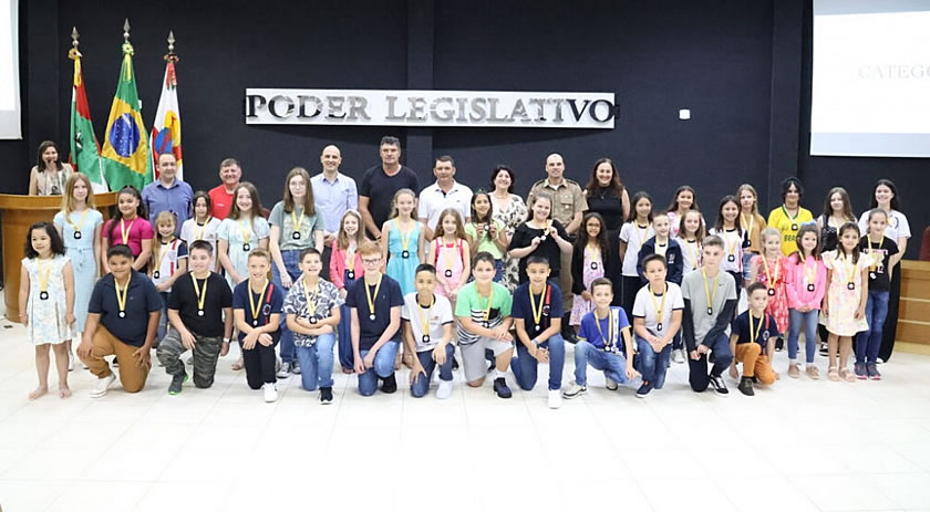 Na categoria B, voltada para alunos do 3º e 4º anos, Valentina de Souza Zanon, do CE Mundo Infantil, ficou com o terceiro lugar, João Victor Maggi, da EEB Santa Terezinha, com o segundo lugar, e Lindianara Demartini, da EEF Juscelino Kubistchek, com o primeiro lugar.
