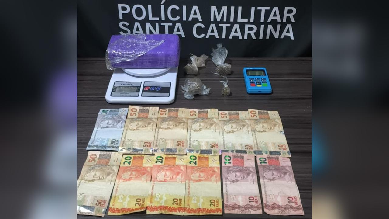 A Polícia Militar realizou uma ação coordenada, em continuidade a Operação 360º Infinito, no intuito de fechar um ponto de drogas. Foi deslocado até o referido local e feito a prisão do proprietário da residência, um homem de 40 anos, que possui extensa ficha criminal envolvendo entorpecentes. Em 2020 o homem já foi preso por tráfico de drogas e atualmente estava em regime aberto. Diante da complexidade da residência, foi solicitado apoio do Canil de São Miguel do Oeste para realizar as buscas. Foram localizadas três porções de maconha embaladas prontas para venda, além de aproximadamente mais 700 gramas da droga no pátio da residência.