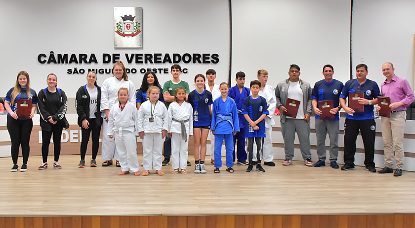 O vereador Ravier Centenaro (PSD) apresentou nesta segunda-feira (9) uma moção de aplauso parabenizando a Associação de Judô do Extremo-Oeste "pelos expressivos resultados conquistados". A moção foi entregue durante sessão ordinária da Câmara de Vereadores a membros da diretoria, atletas e treinadores.