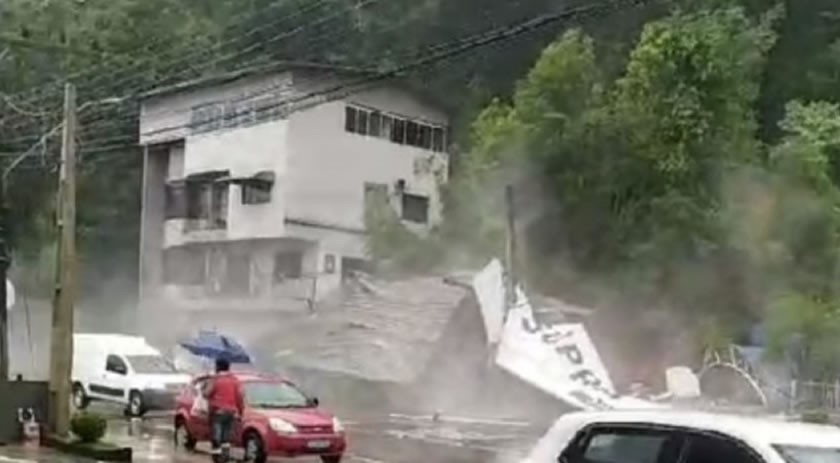 Concórdia registrou na manhã desta sexta-feira (17) um desmoronamento próximo ao parque de exposições da cidade, onde uma gráfica e uma revenda de veículos foram destruídos.