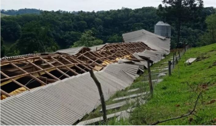 O temporal que atingiu a cidade de Nova Itaberaba, no Oeste de Santa Catarina, deixou diversos estragos. Um chiqueiro com 550 animais ficou completamente danificado com um prejuízo que deve passar de R$ 1 milhão.