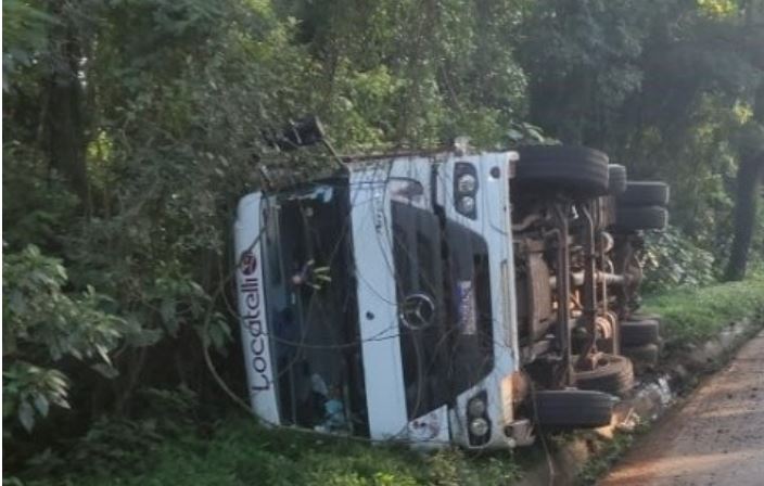 O motorista de um caminhão que transportava suínos saiu ileso após capotar o veículo na manhã desta sexta-feira, dia 15, por volta das 6 horas, na BR-282, próximo ao distrito de Juvêncio, em Saudades, no Oeste catarinense.