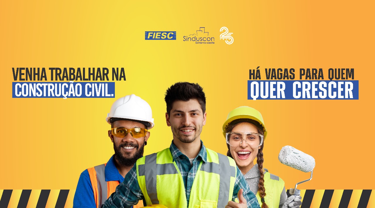 O Sindicato da Indústria da Construção e de Artefatos de Concreto Armado do Extremo Oeste (Sinduscon) lançou nesta semana, a campanha para contratação de colaboradores, Com o mote “Venha trabalhar na construção civil”, a intenção é de fazer com que o setor consiga ampliar os índices de contratação das empresas setor, que hoje sofrem com baixa procura. Conforme o presidente da entidade, Cleonor Mahl, existem centenas de vagas na região e incalculáveis oportunidades de crescimento pessoal e profissional.