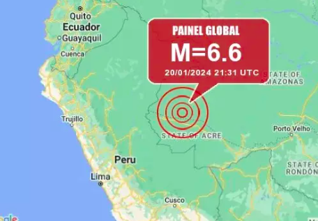 Terremoto com 6,6 graus na Escala Richter foi registrado na noite de sábado (20) nos estados do Acre e Amazonas