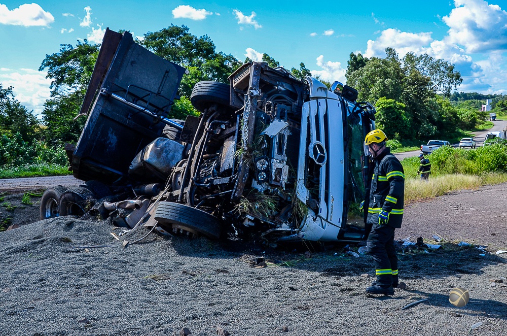 Uma saída de pista seguida de capotamento de caminhão caçamba foi registrado por volta das 15h30 desta quinta-feira (25) na BR-163 em São Miguel do Oeste. O acidente aconteceu na Linha Três Curvas, saída para Guaraciaba.