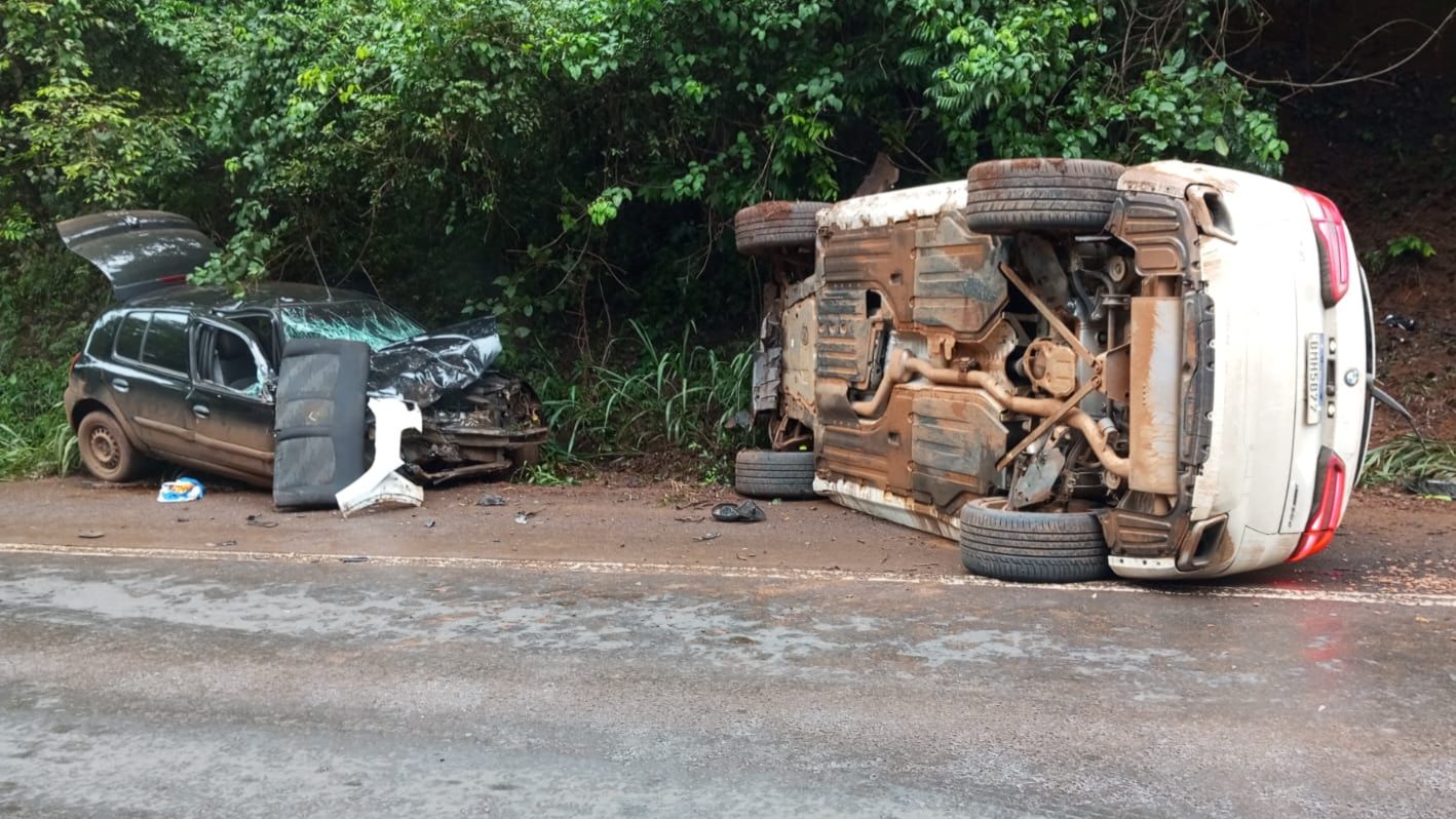 Uma colisão frontal entre dois veículos deixou três pessoas feridas por volta das 9h25 dessa terça-feira (5), na BR 282, em Saudades.