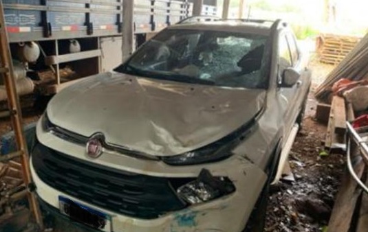 Com base nas informações levantadas, a Polícia Militar foi até uma propriedade rural de Itapiranga e localizou uma Fiat Toro, com placas daquele município, com todas as características informadas pelas testemunhas e também com danos, que levam a crer que o veículo é o mesmo que causou o acidente.