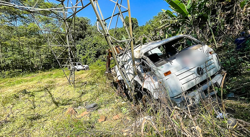 Seis trabalhadores de uma empresa de energia elétrica ficaram feridos após o caminhão em que estavam sair da pista, descer uma ribanceira e capotar no interior de São Miguel do Oeste. O incidente ocorreu por volta das 10h30 desta segunda-feira (01), na Linha Sete de Setembro.