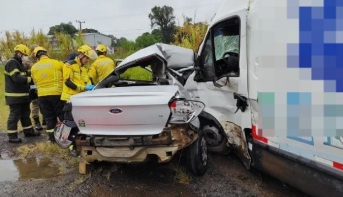 Conforme informações da Polícia Rodoviária Federal (PRF), o carro teria rodado na pista e foi atingido pelo furgão, emplacado em Catanduvas. O motorista, de 61 anos, teve ferimentos leves e foi encaminhado pelo Samu ao Hospital Universitário Santa Terezinha.
