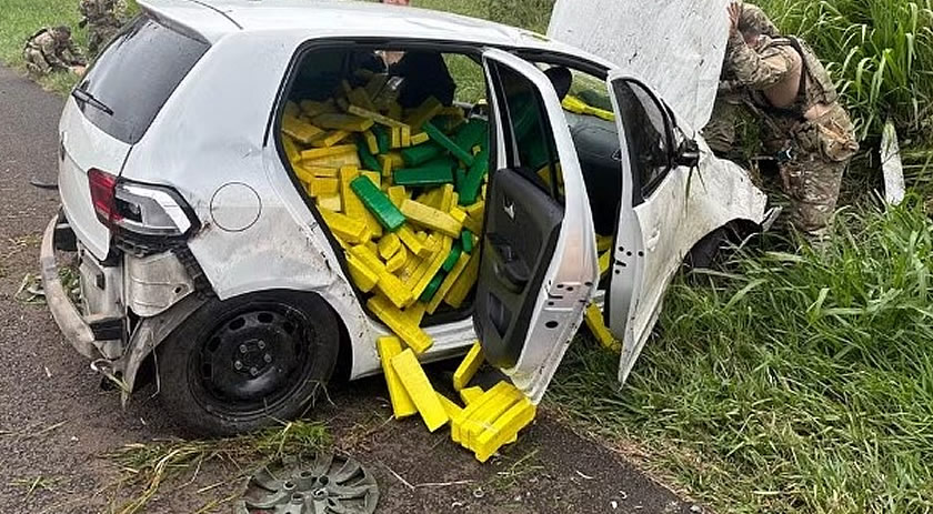 De acordo com a PRF, o carro que o jovem estava tem alerta de roubo em Curitiba. Dentro do veículo havia 559 quilos de maconha.