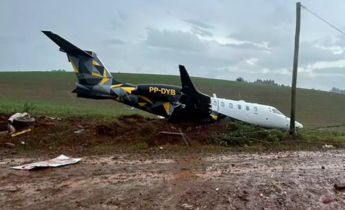 O voo saiu de Chapecó por volta das 13h30 e durou cerca de 14 minutos, segundo o site Flightradar24. Imagens do pouso mostram que a aeronave não conseguiu parar e ultrapassou o final da pista, parando em um campo.