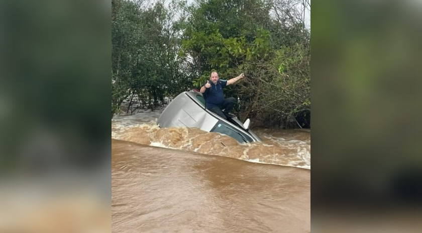 No meio da manhã eles encontraram o homem na RS 403, junto à Ponte do Botucataí, divisa entre Cachoeira do Sul e Rio Pardo. Ele estava ilhado sobre o teto do carro. Ele ficou por 12 horas preso devido à em enchente no RS