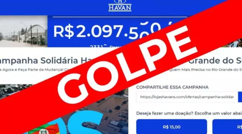 A empresa ainda alertou que foi criado por criminosos um site para arrecadar valores em PIX em nome da Havan, cujos valores seriam repassados para as vítimas da tragédia.
