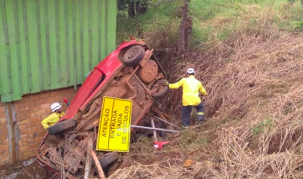 Segundo informações do Corpo de Bombeiros, um carro Volkswagen Gol com placa de Seara saiu de pista, caiu em um barranco e atingiu uma casa. No carro estavam três pessoas, que conseguiram sair do veículo por conta própria.