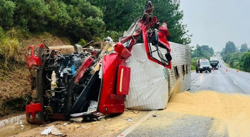 Com a violência do impacto, um dos caminhões chegou a sair da pista e capotar nas margens da rodovia, parando com as rodas viradas para cima. O acidente deixou o trânsito lento no local.