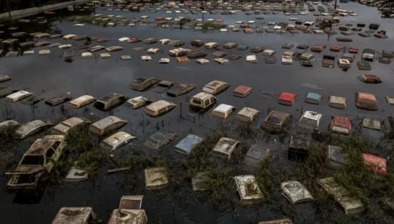 Imagens de ‘cemitério de carros’ após enchente em Porto Alegre impressionam