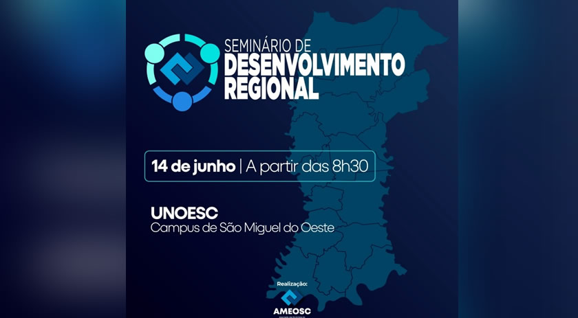 A Associação dos Municípios do Extremo Oeste de Santa Catarina, lançou na tarde de segunda-feira (27), a data de realização do Seminário de Desenvolvimento Regional, que acontecerá no dia 14 de junho, na Unoesc. O evento reunirá lideranças das diversas entidades da região da Ameosc, além de especialistas e profissionais de diversas áreas para discutir estratégias e soluções inovadoras para o desenvolvimento sustentável e inclusivo da região.