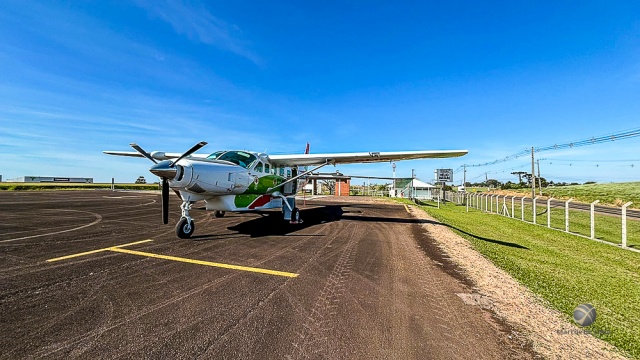 A aeronave está baseada em Joaçaba e realiza transferências aeromédicas no Oeste de SC