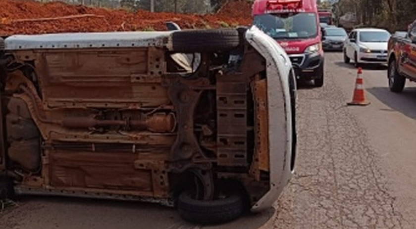 Veículo capota e condutora é encaminhada ao hospital; crianças escapam sem ferimentos graves