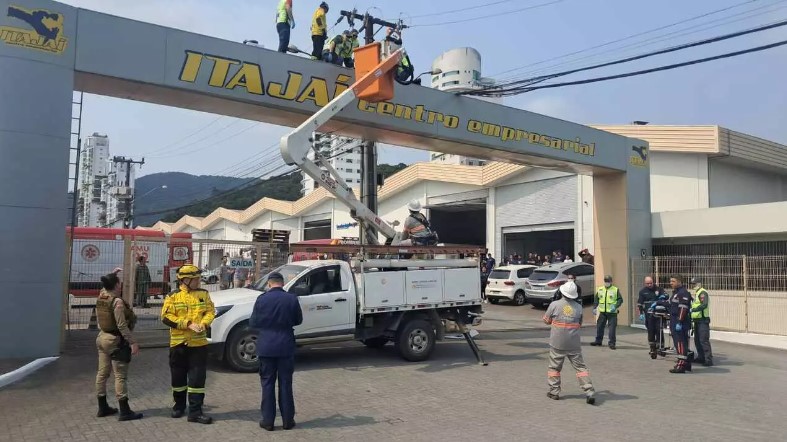 A Central Elétrica Celesc também foi acionada para desligar a rede elétrica. A empresa confirmou que a rede onde ocorreu o acidente é de média tensão e pode atingir até 23 mil volts.