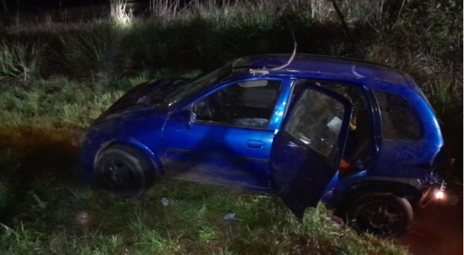 Ao chegar no local, próximo ao portal da cidade, a equipe encontrou um automóvel Corsa danificado e caído nas margens da estrada.