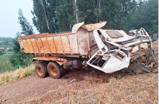 O veículo que ele dirigia capotou e ficou com a cabine completamente destruída. O jovem de 25 anos sofreu apenas lesões leves, segundo a Polícia Militar Rodoviária (PMRv).