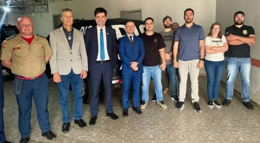 Na quarta-feira (11), a Delegacia de Investigações Criminais (DIC) de São Miguel do Oeste recebeu a visita do Delegado-Geral da Polícia Civil de Santa Catarina, Ulisses Gabriel, do Secretário de Segurança Pública do Estado, Flávio Graff, e do Comandante-Geral do Corpo de Bombeiros, Coronel Fabiano Bastos das Neves.