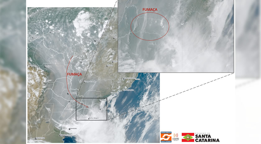 Na região Central e o Litoral catarinense, a fumaça também esteve presente. Porém, o tempo fechado, visível durante todo dia, esteve associado à nebulosidade de uma frente fria que atua no Rio Grande do Sul.