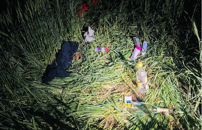 No local, os policiais perceberam que a via estava bloqueada e iniciaram buscas após notarem pegadas na lavoura. Em determinado momento, o suspeito, que estava deitado no meio do trigo, atacou um dos policiais com a faca, acertando a cabeça da vítima, perto da têmpora esquerda.