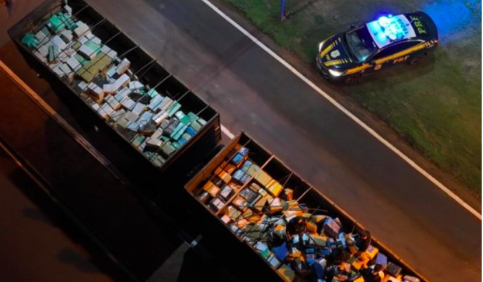 Segundo a PRF, a equipe de policiais realizava fiscalizações na rodovia, indicada por análise de risco da inteligência, quando abordaram um caminhão com dois semirreboques atrelados.