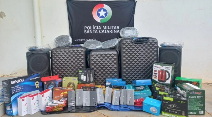 Uma guarnição da Polícia Militar apreendeu diversos eletrônicos durante abordagem a um veículo na tarde desta quarta-feira, dia 9, por volta das 15 horas, na SC-157, em Novo Horizonte, no Extremo-Oeste de Santa Catarina.