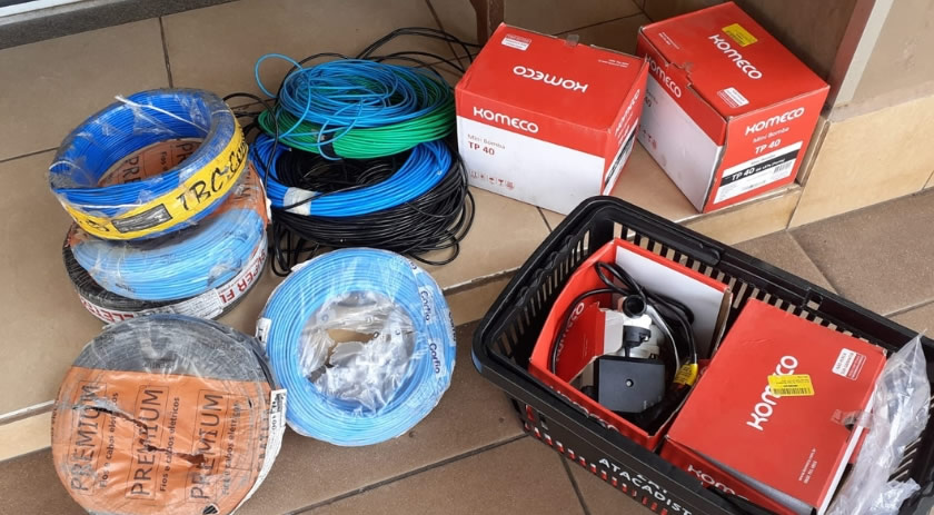Durante a revista, a guarnição encontrou com o suspeito quatro mini pressurizadores e diversos rolos de cabo de energia. Após a verificação, foi constatado que os itens haviam sido furtados na cidade de São Miguel do Oeste na noite anterior. O suspeito correspondia à descrição do autor do furto, incluindo suas vestimentas.