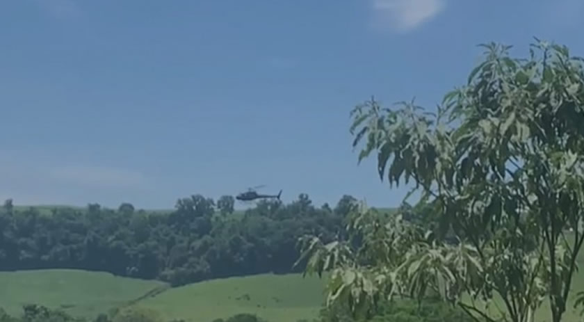 As equipes do Tático e do Canil da Polícia Militar de São Miguel do Oeste, juntamente com o apoio aéreo, concentram esforços na área de mata onde o homem teria se escondido.