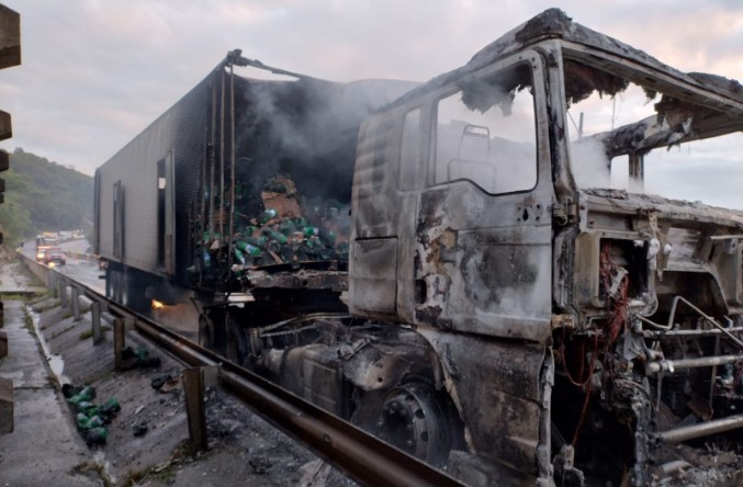 Segundo o Corpo de Bombeiros, ao chegar no local, a guarnição encontrou a cabine do caminhão já bastante danificada pela ação do fogo. Logo, as chamas se propagaram para o reboque, afetando a carga.
