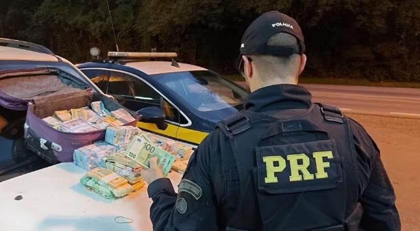 Segundo a PRF, a mulher teria confessado que o dinheiro era do Banco do Brasil e confirmou que estavam a caminho do país vizinho.