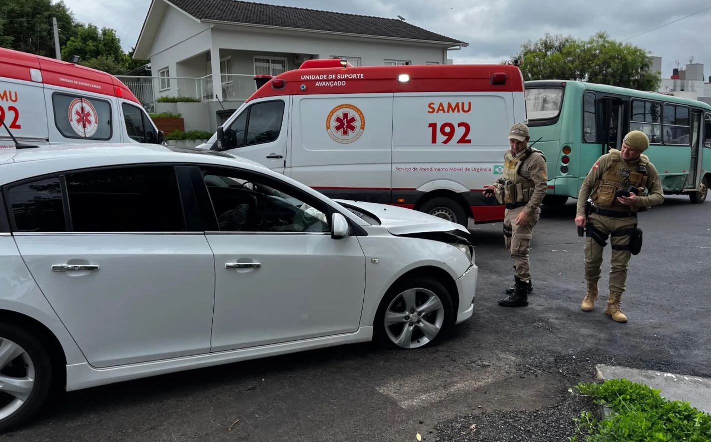 Um acidente entre um carro e um ônibus foi registrado por volta das 13h20 dessa sexta-feira, 22, no cruzamento das ruas Jorge Lacerda e Rui Barbosa, no centro de São Miguel do Oeste.