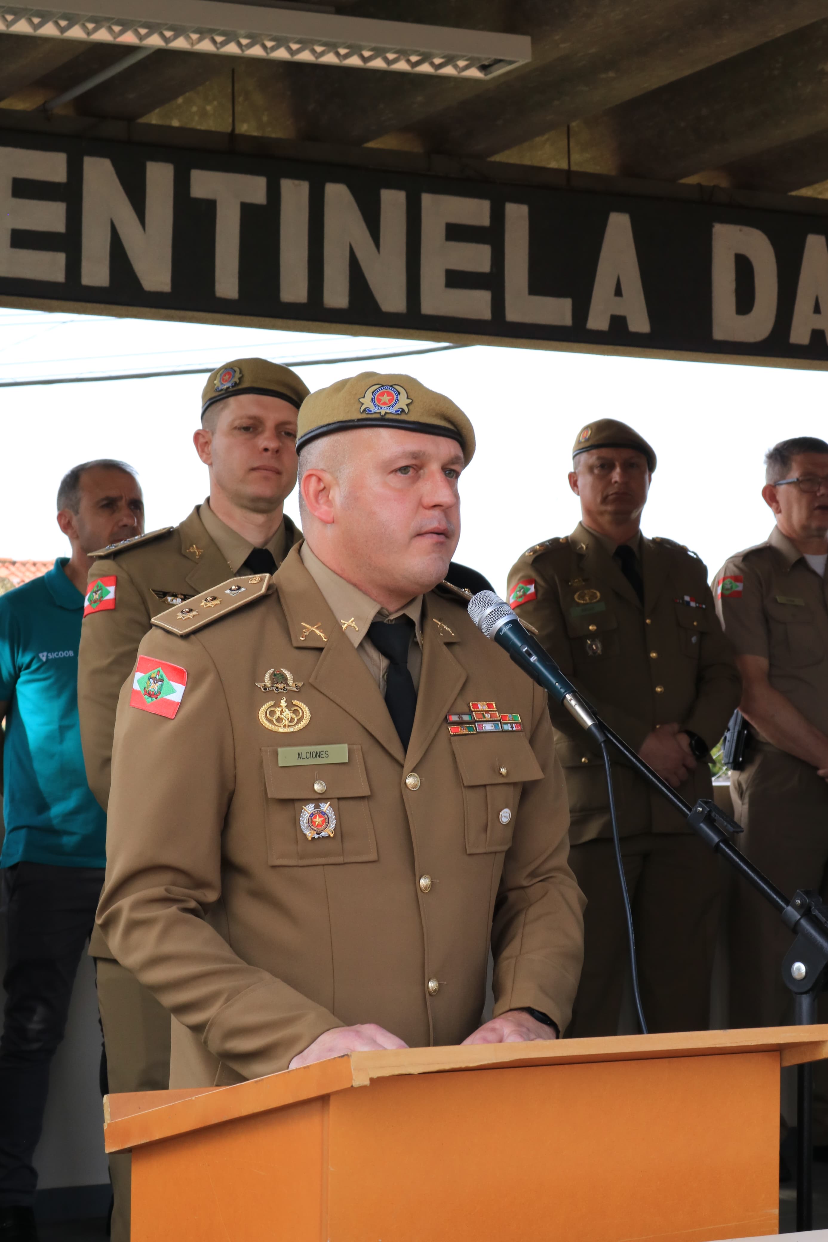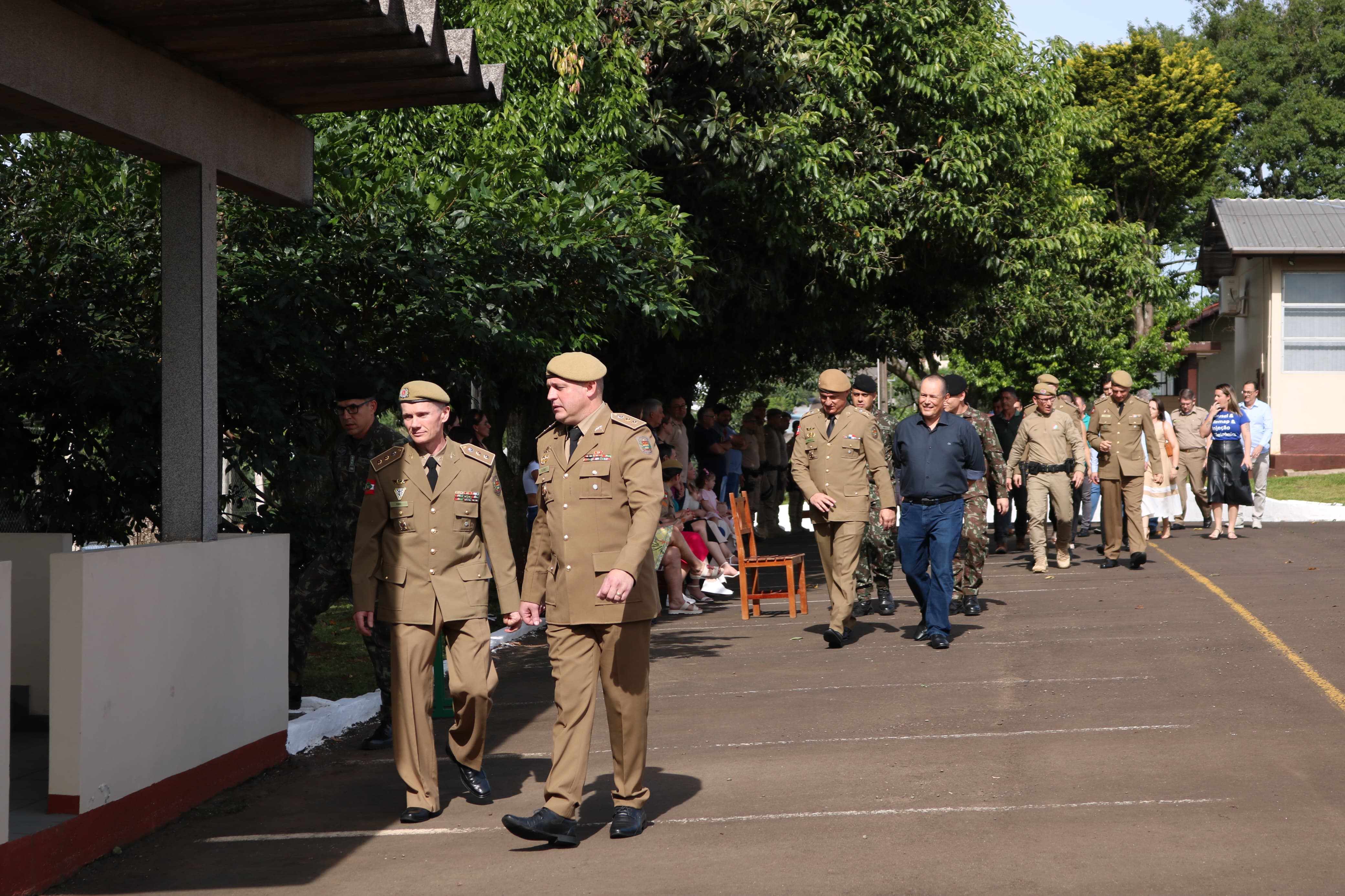 A cerimônia aconteceu na sede do 11° Batalhão de Polícia Militar de Fronteira (11°BPM/Fron) em São Miguel do Oeste e contou com a presença de integrantes do 36° Batalhão de Polícia Militar de Fronteira (36°BPM/Fron) de Dionísio Cerqueira.