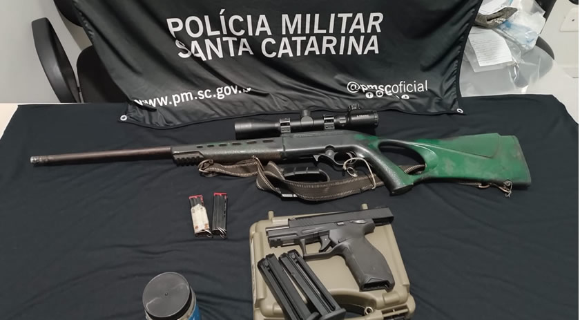 Na residência a guarnição da Policia Militar, dialogou com o homem de 47 anos, o qual confirmou ter realizado disparos no local. A arma de fogo foi localizada em um armário da residência, sendo uma pistola TX22, com dois carregadores, um deles municiado. Junto com a pistola também foi localizado um rifle 7022, com luneta e com 2 carregadores vazios, e 333 munições calibre .22. As armas estavam registradas no nome do suspeito.