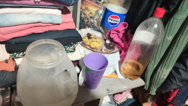No quarto onde o casal estava foi encontrado pelos policiais quatro facas, inclusive, a que ele usou para agredi-lá. A guarnição também constatou que a vítima se alimentava somente dentro do quarto, pois, o autor não a deixava sair.