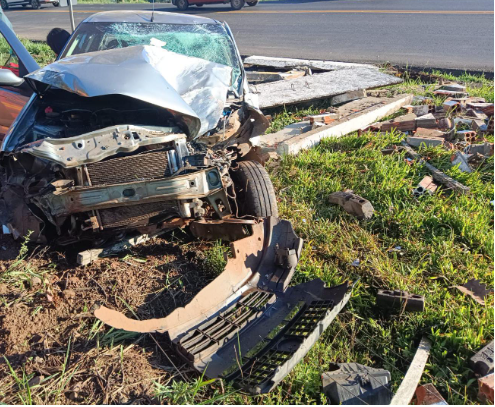 Um carro bateu em uma parada de ônibus na manhã desta quarta-feira (11), na BR-158, altura da linha Humaitá, em Cunha Porã. Conforme informações dos bombeiros, se trata de um Fiat Siena placas Mercosul, conduzido por uma mulher de 31 anos, que saiu da pista e colidiu após ser “fechado” por um caminhão.