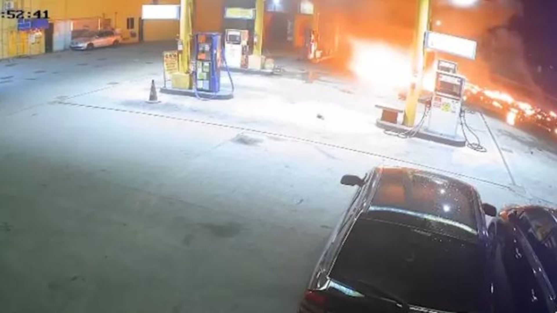 Um veículo desgovernado invadiu um posto de gasolina em Campos dos Goytacazes, no Rio de Janeiro, bateu em uma bomba de combustível e pegou fogo. Imagens impressionantes mostram o momento em que o carro explode.